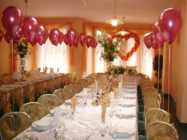 Wesela to jedne z najczęstszych uroczystości, które dekorujemy balonami. Dekorujemy sale, namioty, plenery, najczęściej w Poznaniu oraz bliskich okolicach, choć w przypadku większych realizacji możliwy jest dojazd w inne części Polski. Bardzo popularnymi motywami są, jak nie trudno się domyślić, serca, bramy i girlandy, stroiki helowe. Wypuszczamy też balony napełnione helem na szczęście, w ofercie mamy również balony świecące, które wypuszczane są po zmroku.